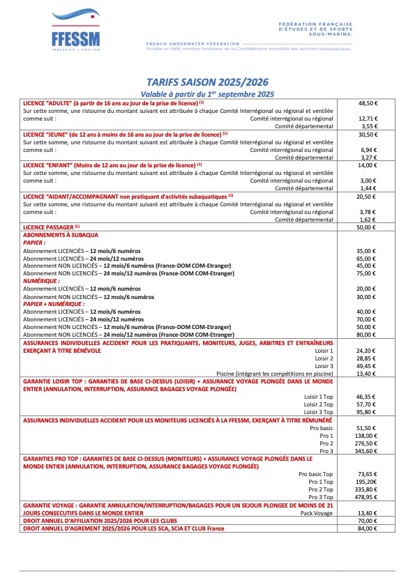 Le club met à disposition pour ses adhérents du matériel pour les sorties encadrées (blocs, détendeurs, combinaisons, stabs, ....)
